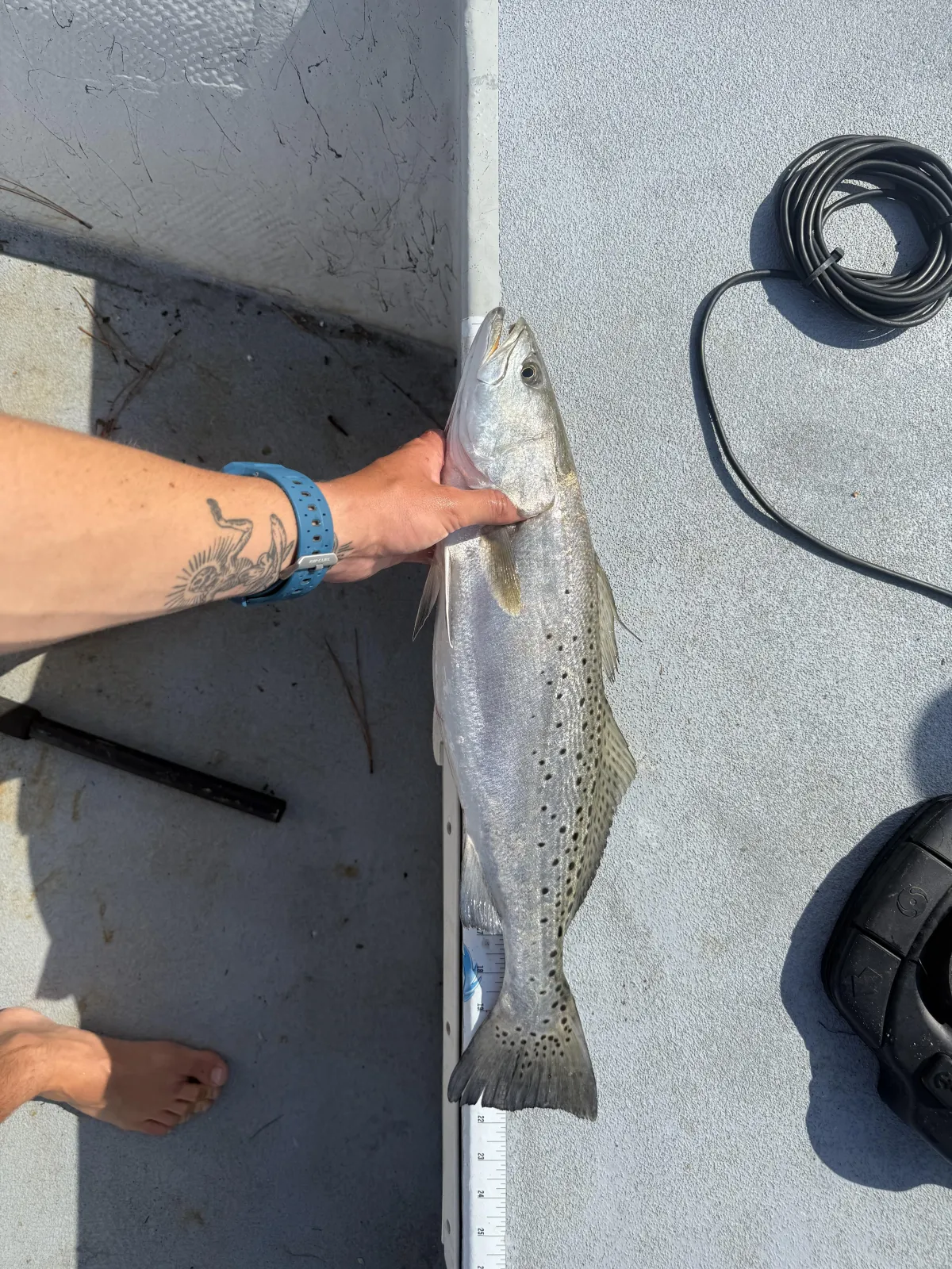 Our 18' Kenner V-Hull is a proven fishing machine-stable, reliable, and perfectly suited for inshore and near shore waters around Topsail Island. Powered by a brand new 2024 Suzuki 90HP outboard, it delivers smooth, quiet performance to get you to the fish quickly and comfortably.